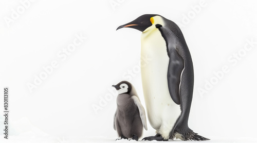 Fototapeta premium Emperor Penguin Standing Beside Chick on Snowy Ground