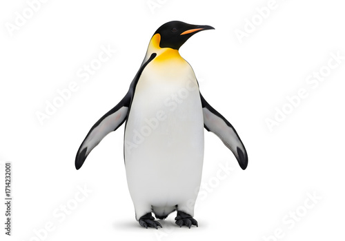 © Abdur, Fototapeta premium Emperor penguin standing isolated on white background with outstretched wings