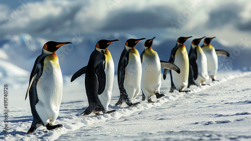 Fototapeta premium Emperor Penguins Marching on Snowy Beach