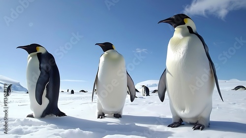 © Ariep, Obraz premium Emperor Penguins on a Snowy Landscape