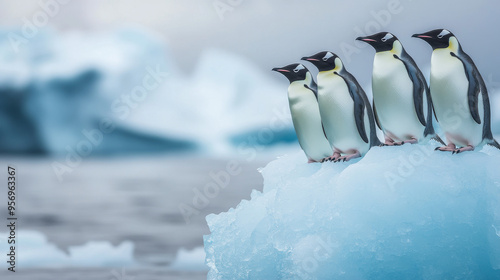 Naklejka premium Emperor Penguins on Iceberg in Antarctica: Wildlife Photography