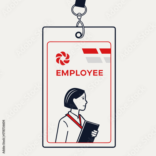 © Sa, Fototapeta premium Employee ID Badge with Woman and Company Logo employee badge