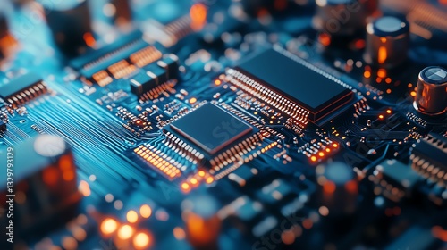© Papisut, Obraz premium Employees are assembling finished microchips into consumer electronic devices.