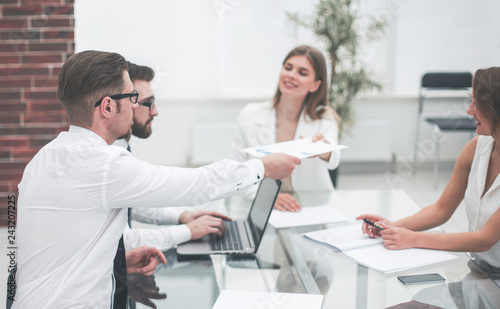 Fototapeta premium employees discussing business documents.