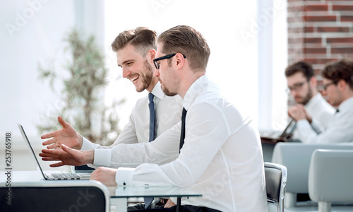 Obraz premium employees discussing new information