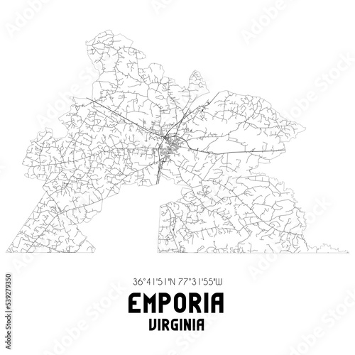 Fototapeta premium Emporia Virginia. US street map with black and white lines.