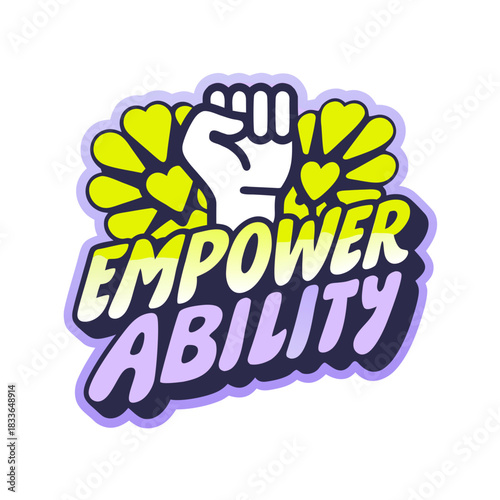 © zalal, Obraz premium Empower Ability sticker with yellow hearts and purple outline