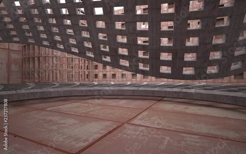 Fototapeta premium Empty abstract room interior of sheets rusted metal and brown concrete. Architectural background. 3D illustration and rendering