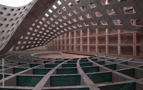 Obraz premium Empty abstract room interior of sheets rusted metal and brown concrete. Architectural background. 3D illustration and rendering