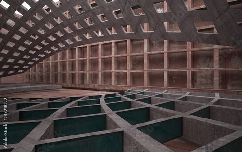Obraz premium Empty abstract room interior of sheets rusted metal and brown concrete. Architectural background. 3D illustration and rendering