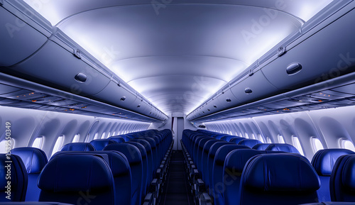 © fannybuddhies, Fototapeta premium Empty airplane cabin interior seats