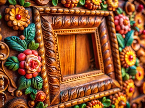 Naklejka premium Empty Antique Frame with Traditional Hungarian Floral Motifs - Stock Photo