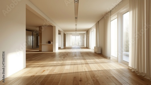 © Simon, Obraz premium Empty apartment with wooden parquet floor. Real estate concept.