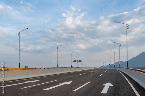© litchima, Fototapeta premium Empty asphalt highway road with city skyline.