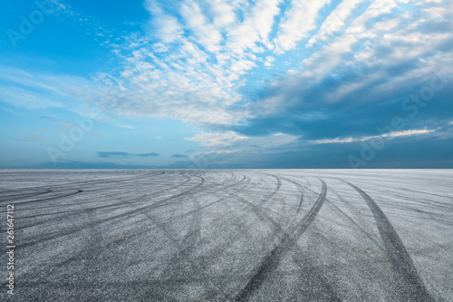 Fototapeta premium Empty asphalt race track ground and beautiful sky clouds