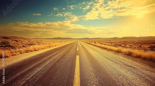 © Thanthara, Naklejka premium Empty asphalt road, Adventure road in desert