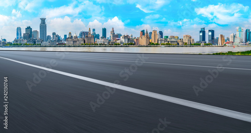 Obraz premium Empty asphalt road along modern commercial buildings in China,s cities