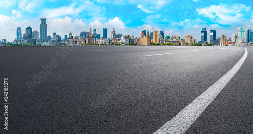 Obraz premium Empty asphalt road along modern commercial buildings in China,s cities