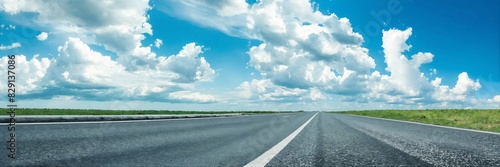 © Abraham, Fototapeta premium Empty asphalt road and blue sky with white clouds.