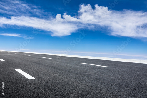 © ABCDstock, Naklejka premium Empty asphalt road and blue sky with white clouds scenery.