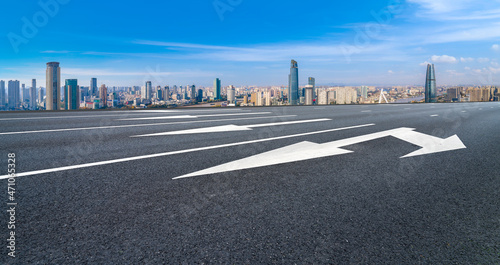 Naklejka premium Empty asphalt road and city skyline and building landscape, China.