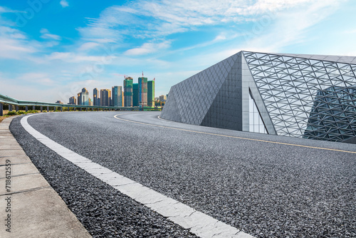 © zhao dongfang, Fototapeta premium Empty asphalt road and city skyline background