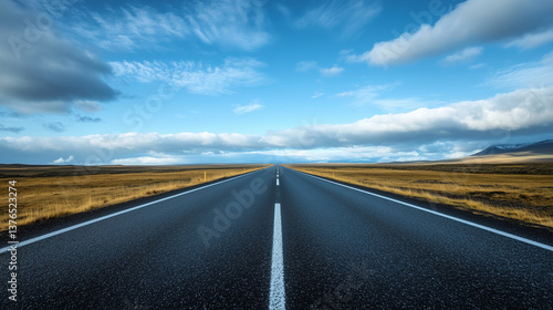 © TiA, Fototapeta premium Empty asphalt road in wide open landscape under blue sky