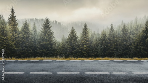 © W saputro, Naklejka premium Empty asphalt road leading through a misty forest.