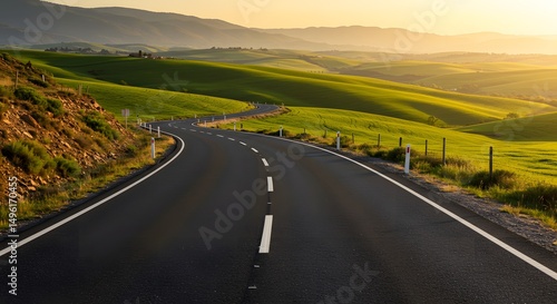 Fototapeta premium Empty Asphalt Road Leading Towards the Horizon in a Rural Landscape