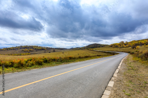 © ABCDstock, Fototapeta premium Empty asphalt road pavement and sky clouds on a cloudy day.