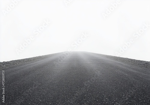 Naklejka premium Empty asphalt road stretching forward into a dense white fog, creating a...