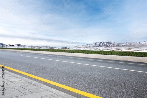 Fototapeta premium empty asphalt road with beautiful snow mountains