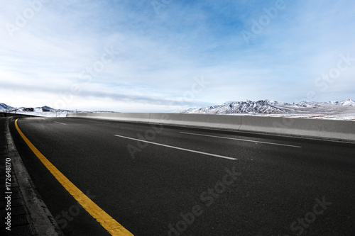 Fototapeta premium empty asphalt road with beautiful snow mountains