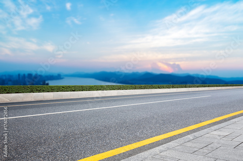 © zhu difeng, Fototapeta premium empty asphalt road with modern city near long river