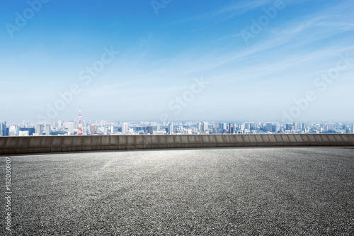 Fototapeta premium empty asphalt road with modern cityscape