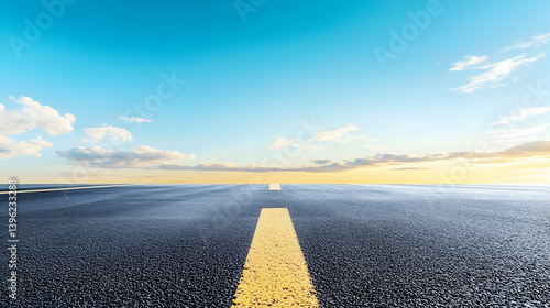 © artzone, Naklejka premium Empty Asphalt Road With Yellow Line Under Pale Sky