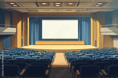 Fototapeta premium Empty Auditorium Stage with Blank Screen and Seats