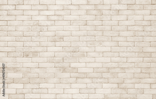 © Manitchaya, Naklejka premium Empty background of wide cream brick wall texture. Beige old brown brick wall concrete or stone textured design backdrop.