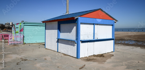 © BradleyWarren, Naklejka premium empty beach hut in winter