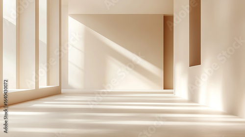 © second, Obraz premium Empty beige minimalist interior with natural light