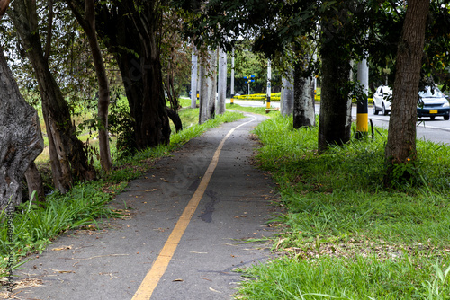 © anamejia18, Fototapeta premium Empty bike path along the Cali - Palmira road in Colombia