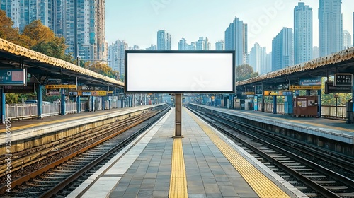 © Watasiwa, Fototapeta premium Empty Billboard at Urban Train Station in City Center