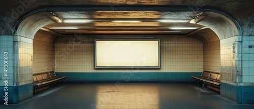 Obraz premium Empty billboard inside Paris subway station, modern underground setting,...