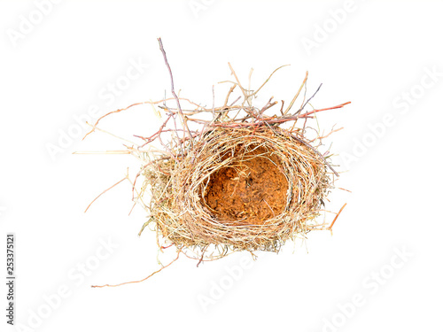 Obraz premium Empty bird nest isolated on white background, top view