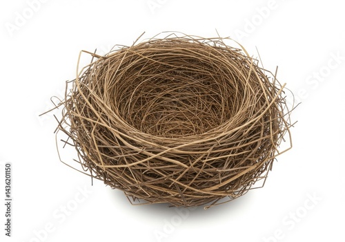 © photosstcokbd, Obraz premium Empty bird nest made of twigs isolated on white background