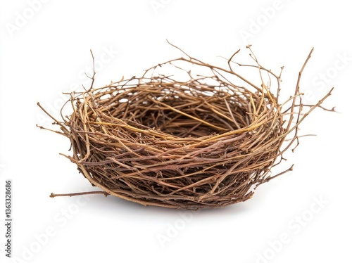 © Enen, Obraz premium Empty Bird Nest Woven with Twigs on White Background Studio Shot