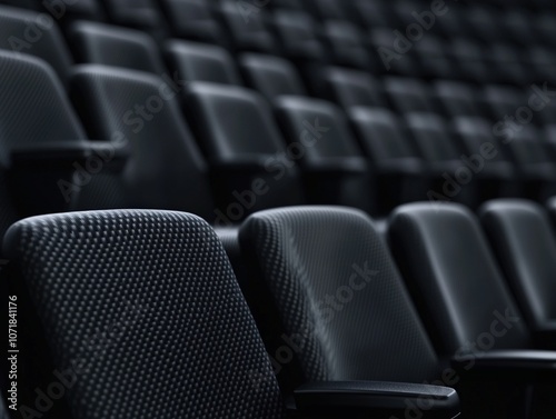 © CoreVisuals, Fototapeta premium Empty black stadium seats in a modern arena setting.
