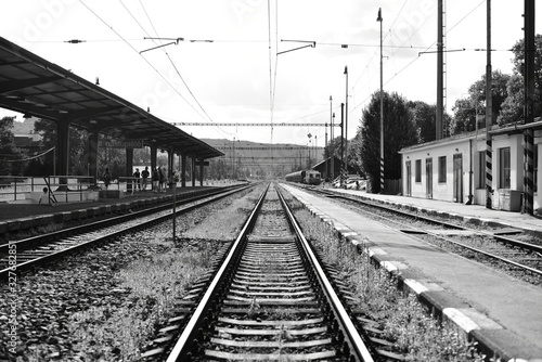 © FrediMOR, Obraz premium empty Black & white railroad train
