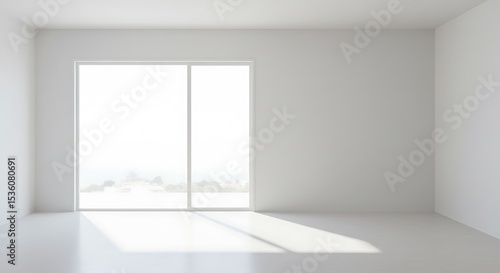 © BRNSN, Obraz premium empty blank glass window sliding on white wall interior house