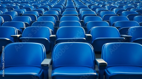 Naklejka premium Empty blue stadium seats in neat rows, highlighting the absence of spectators...